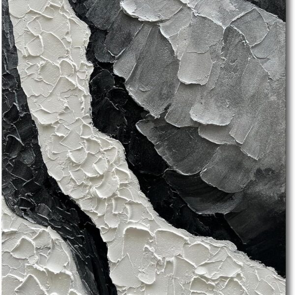 Art hand-painted Thick Texture Black and White Minimalist Oil Painting 45×30 inch Large Office Corridor Living Room Wall Decorative Art Painting