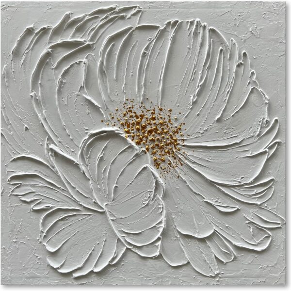 Art 30×30 inch Hand-Painted White Texture Art Oil Painting White Flower Painting Abstract Home Wall Decorative Art