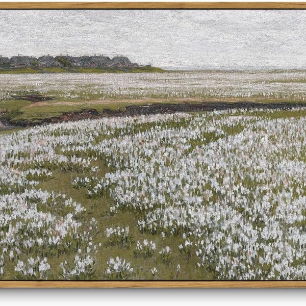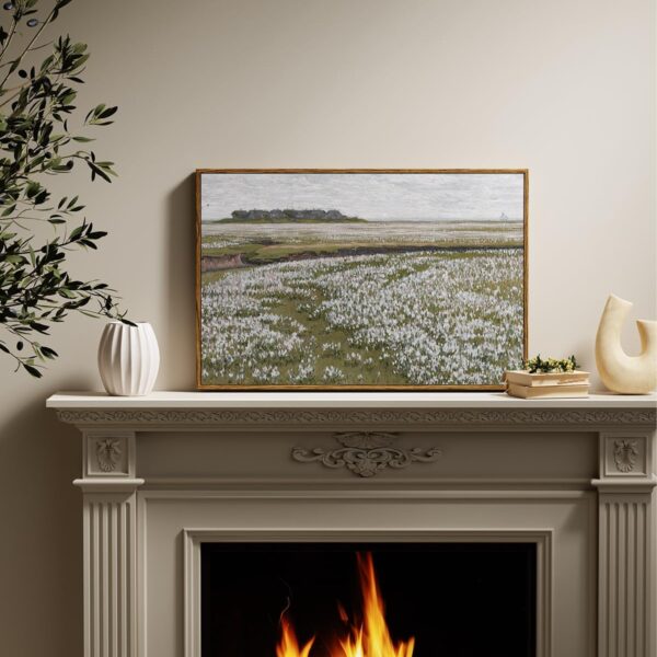 Framed Canvas Wall Art Vintage Decor, Classical Grassland Paintings Large Wall Art, Meadow Full of Flowers Wall Pictures for Living Room Farmhouse Bathroom Wall Decor, 16″x24″