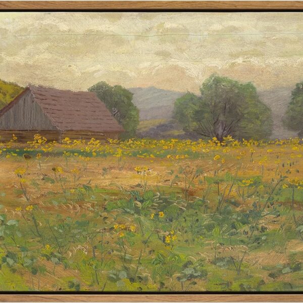 Framed Canvas Wall Art,Vintage Landscape Art, 14x11in Framed Rustic Canvas Print, Meadow with Flowers Painting, Modern Farmhouse Decor Gifts, Bedroom Bathroom Living Room,Office Decor