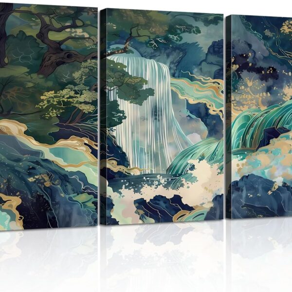 3Pcs Framed Japanese Canvas Wall art Painting Large Waterfall Scenery Poster Print Wrap Canvas Artwork Nature Scenery Abstract Blue Waterfall Zen Art Print Living Room Bedroom Office Decor 12×16 Inch