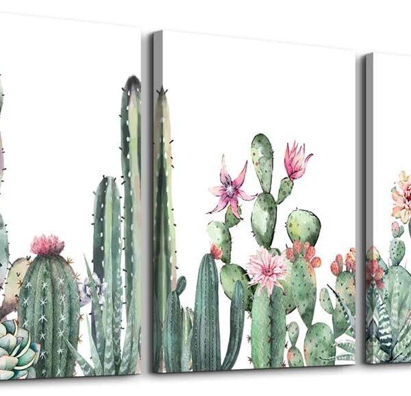 Canvas Wall Art For Living Room Family Wall Decor For Bedroom Kitchen Wall Art Pictures Artwork Prints Green Succulent Cactus Wall Painting Modern Framed Bathroom Home Decorations 12″ X 16″3 Piece